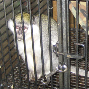 A friendly raccoon It was alot of fun feeding the animals. Most seemed to love carrots. The monkeys were allowed a small bit of popcorn for a treat, and bananas. Still, the carrots were the biggest hit. The monkeys were aggressive when the goodies ran out, as well as the female Emu who puffed her chest up, stomped and made loud booming sounds. Emus can deliver a hard karate-like kick as a defense mechanism. Some of the most interesting animals to watch are monkeys. They are very entertaining, but in no way an animal that is intended to be a pet. That's how many of them got to the ranch, they were too much for their owners to handle. One of them, Igor was unpredictable - sweet one moment and vicious the next. Not an animal you can trust around kids or adults who aren't very well trained.